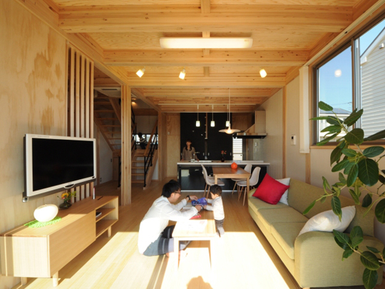 - 将来のリフォームを考えた可変性豊かな間取りが特徴の室内空間には、家族みんなの参加型キッチンや大きなウッドデッキ、片付けやすい収納ルームを設けるなど、ご家族のコミュニケーションを大切にプランのご提案をいたします。